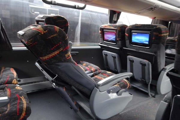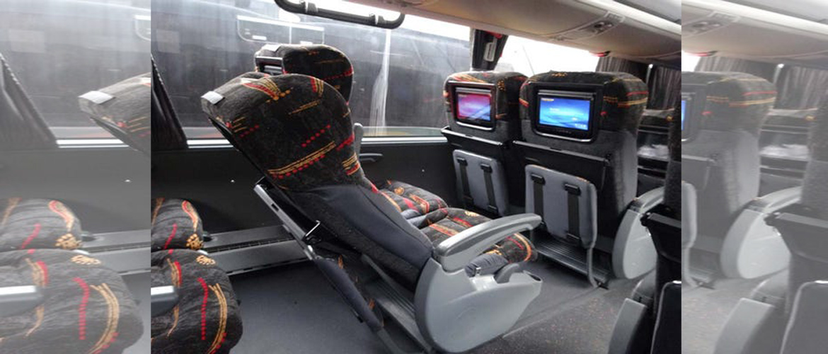 All buses have comfortable seats with at least 140° recline and most of the buses have onboard entertainment with selected movies (160° recline seats are also available as extra in the extra section before checkout).